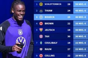 德转盘点德国后卫身价:施洛特贝克第一 比塞克第三未入选国家队