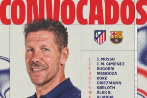 体育资讯2月12日讯 北京时间明天凌晨,马竞将在国王杯半决赛首回合比赛中主场对阵巴萨,马竞公布了此役的球员名单。卡尔多索、巴里奥斯缺席。