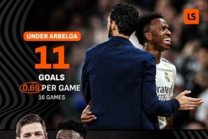 据媒体LiveScore统计显示,维尼修斯在新帅阿韦洛亚的手下,出战16场收获11球,场均进球效率达到0.69球,远高于此前阿隆索执教的时期。当时,25岁的维尼修斯在阿隆索手下出战33场仅7球,场均仅0.21球。
